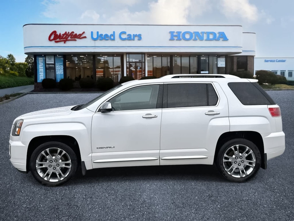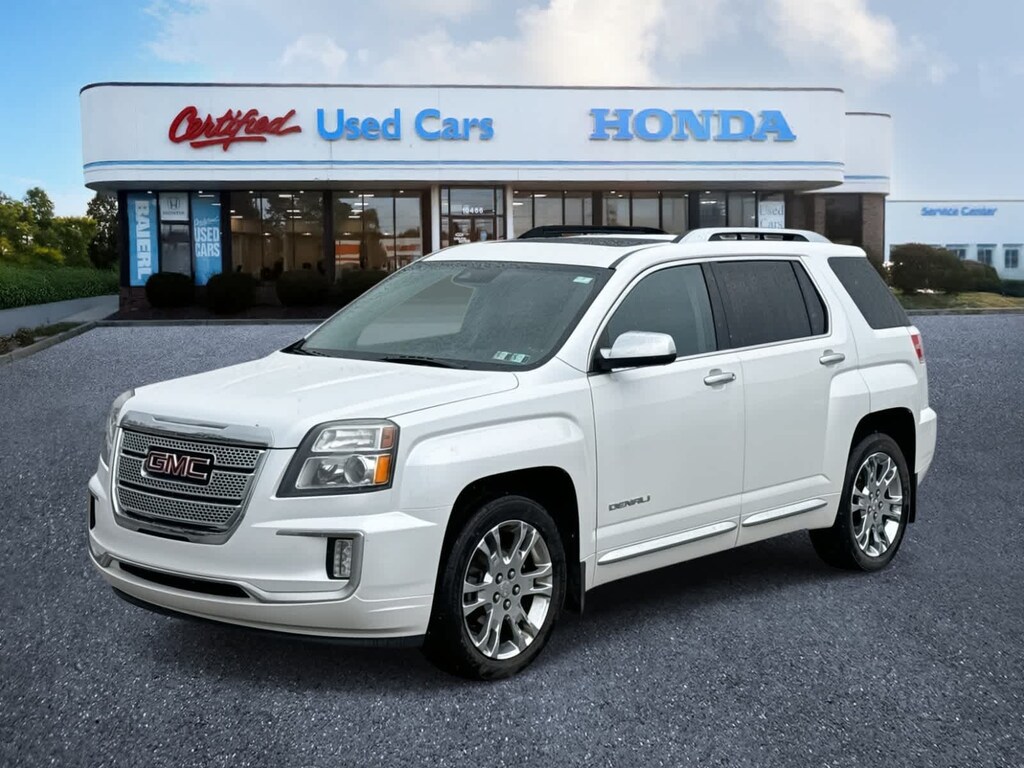 Baierl Honda is pumped up to offer this great-looking 2016 GMC Terrain in White Frost Tricoat. This vehicle has been inspected by our award winning service team and comes with the following features; Terrain Denali, 4D Sport Utility, 3.6L V6 DGI DOHC VVT, 6-Speed Automatic, AWD, White Frost Tricoat, Jet Black Leather.