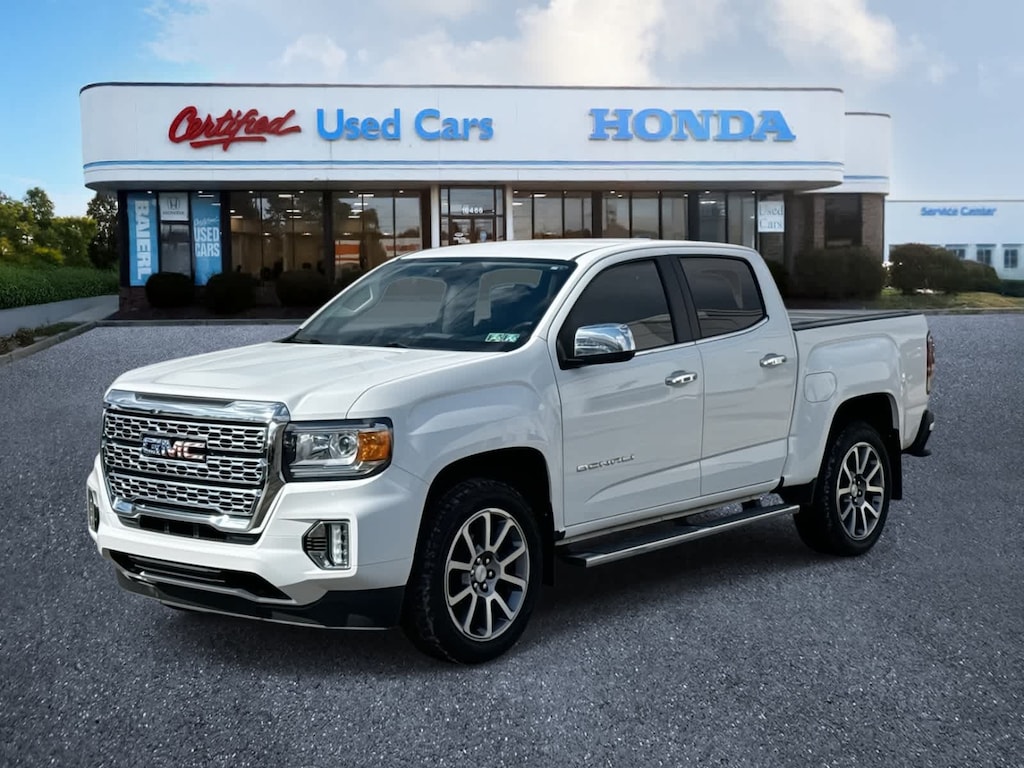 Baierl Honda is proud to offer this handsome 2021 GMC Canyon in Summit White. This vehicle has been inspected by our award winning service team and comes with the following features; 60 Day / 3,000 mile Limited Warranty, Canyon Denali, 4D Crew Cab, V6, 8-Speed Automatic, 4WD, Summit White, Jet Black Leather.